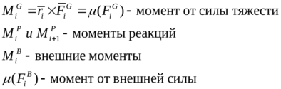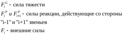 При построении динамической модели будем рассматривать следующие силы и моменты, действующие на каждое звено: