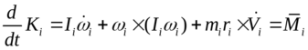 Для записи динамических уравнений движения звеньев воспользуемся известными уравнениями механики, согласно которым производная по времени от количества движения системы равна векторной сумме всех действующих на систему сил, а производная от кинетического момента, вычисленного относительно какой-либо точки, равна векторной сумме моментов от всех сил, действующих на систему, относительно той же точки.