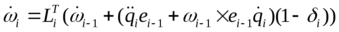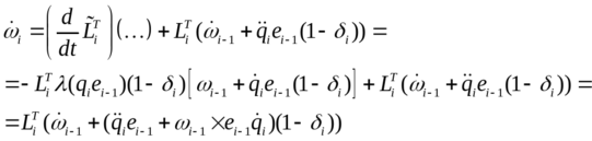 Отметим, что в зависимости от характера сочленения «i-1» и «i» звеньев в состав сил и моментов реакций входят управляющие силы и моменты, развиваемые исполнительными системами и являющиеся обобщенными силами, отнесенными к координате qi