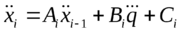 Ai и Bi– матрицы, зависящие от конфигурации механизма в пространстве, а Сi – матрица, зависящая как от конфигурации, так и от скоростей.