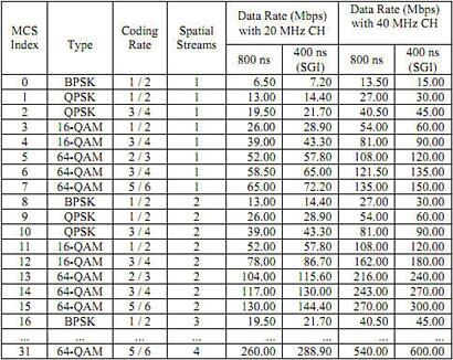 Data Rate это максимальная теоретическая скорость передачи данных в радиоканале в Mбит/сек.