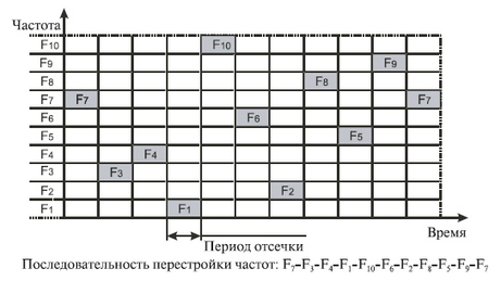 Рис. 1.10. Расширение спектра скачкообразной перестройкой частоты