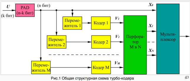 На рис. 1 представлена общая структурная схема M-блочного турбо-кодера.