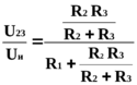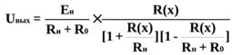 В частном случае, при питании датчика от источника напряжения (Rи = 0), имеем Eи = Uи. При этом выходной сигнал РДП Uвых = U23 пропорционален сопротивлению R23 (образованному частью РДП R(x) = R2 и нагрузкой Rн = R3):
