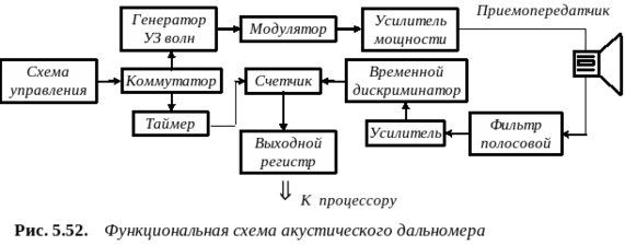 Функциональная схема акустического дальномера, использующего обратимый ЭАП, приведена на рис. 5.52.