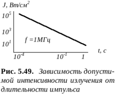 нтенсивность излучения J достигает нескольких Вт/см2 у серийных пьезоизлучателей и нескольких десятков Вт/см2 у магнитострикционных: она ограничивается прочностью и нелинейными свойствами материала излучателей. Для увеличения интенсивности и амплитуды колебаний используют импульсные режимы работы излучателей (рис. 5.49), а также применяют специальные УЗ концентраторы, представляющие собой фокусирующую систему, излучающую сходящуюся сферическую волну. В фокусе подобных концентраторов интенсивность достигает значений 103 ... 105 Вт/см2 на частотах 0,1 ... 10 МГц. Они используются, в частности, при проведении нейрохирургических операций, когда необходимо обеспечить воздействие УЗ на малую область п