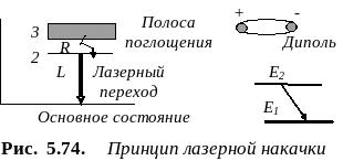 основе работы лазера лежит свойство системы возбужденных атомов или молекул под действием внешнего электромагнитного излучения соответствующей частоты совершать вынужденные квантовые переходы и усиливать это излучение. Система возбужденных атомов (активная среда) способна усиливать падающее излучение, если она находится в состоянии с «инверсией заселенностей» . В этом состоянии число атомов на возбужденном энергетическом уровне превышает число атомов на нижерасположенном уровне.