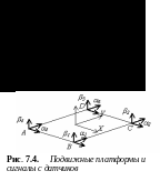 пособ «очувствления» рабочей среды был разработан в Стенфордском исследовательском институте (США) П. Уотсоном и С. Дрейком (рис. 7.4). В соответствии с ним измерение силовых факторов проводилось на системе из трех подвижных платформ, оснащенных датчиками. Внешние силовые факторы F и M вызывают взаимное перемещение платформ, измеряемое вдоль осей X, Y, Z с помощью восьми тензодатчиков, расположенных между платформами. Обозначив буквами и сигналы с тензодатчиков, а l сторону платформы получим: