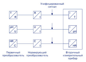 Унифицированным преобразователем — трансмиттером — является датчик, имеющий нормированный диапазон сигнала на выходе. Международный стандарт DIN/VDE 26001, а также ГОСТ 26.011-80 устанавливает допустимые диапазоны унифицированных сигналов, а также вводят ограничения на величину сопротивления источников и приемников этих сигналов