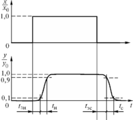 Параметр, используемый для количественного описания быстродействия, называется временем установления tуст –– это интервал времени, который должен пройти после приложения ступенчатого сигнала, для того чтобы сигнал на выходе датчика достиг уровня, отличающегося от входного не более чем на заданную величину e.