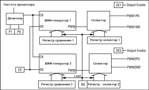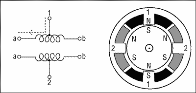 | Введение Шаговые двигатели широко используются в принтерах, автоматических инструментах, приводах дисководов, автомобильных приборных панелях и других приложениях, требующих высокой точности позиционирования и микропроцессорного управления. Как известно, такое управление требует использования специальной логики и высокоточных драйверов, которые могут быть реализованы на дискретной элементной базе, что увеличивает сложность схемы и ее стоимость. Для упрощения процесса разработки и уменьшения стоимости конечного изделия мы предлагаем использовать контроллер шагового двигателя, интегрированный в недорогой процессор Fujitsu MB90F598. Стоит отметить, что подобным контроллером обладают многие процессоры семейства F2MC-16LX, например MB90F428, что дает возможность пользователю выбрать контроллер с желаемой периферией. Архитектура Небольшие шаговые двигатели часто используются, например, в автомобильных приборных панелях (инструментальных кластерах) и выполняют там функции вращения стрелок спидометра, тахометра, указателя температуры охлаждающей жидкости и уровня топлива. При этом по сравнению с традиционно используемыми гальванометрическими системами отсутствует вибрация стрелки, увеличивается точность показаний. Один процессор MB90F598 способен обслуживать четыре независимых шаговых двигателя, которые подключаются непосредственно к процессору без дополнительных интерфейсных схем. Рассмотрим коротко принцип действия шаговых двигателей и их отличие от двигателей постоянного тока. Шаговые двигатели: принцип действия и отличия от двигателей постоянного тока Двигатели постоянного тока (ДПТ) начинают работать сразу, как только к ним будет приложено постоянное напряжение. Переключение направления тока через обмотки ротора осуществляется механическим коммутатором - коллектором. Постоянные магниты при этом расположены на статоре. Шаговый двигатель может быть рассмотрен как ДПТ без коммутатора. Обмотки его являются частью статора. На роторе расположен постоянный магнит или, для случаев с переменным магнитным сопротивлением, зубчатый блок из магнитомягкого материала. Все коммутации производятся внешними схемами. Обычно система мотор - контроллер разрабатывается так, чтобы была возможность вывода ротора в любую, фиксированную позицию, то есть система управляется по положению. Цикличность позиционирования ротора зависит от его геометрии. Принято различать шаговые двигатели и серводвигатели. Принцип их действия во многом похож, и многие контроллеры могут работать с обоими типами. Основное отличие заключается в количестве шагов на цикл (один оборот ротора). Серводвигатели требуют наличия в системе управления аналоговой обратной связи, в качестве которой обычно используется потенциометр. Ток в этом случае обратно пропорционален разности желаемого и текущего положений. Шаговые двигатели преимущественно используются в системах без обратных связей, требующих небольших ускорений при движении. Шаговые двигатели (ШД) делятся на две разновидности: двигатели с постоянными магнитами и двигатели с переменным магнитным сопротивлением (гибридные двигатели). С точки зрения контроллера отличие между ними отсутствует. Двигатели с постоянными магнитами обычно имеют две независимые обмотки, у которых может присутствовать ил