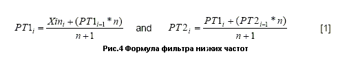 ФНЧ второго порядка легко реализуется двухступенчатым применением ФНЧ первого порядка, который, в свою очередь может быть представлен при помощи простой математической формулы вида: