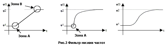 Чтобы избавиться от этого, используем ФНЧ, который позволяет решить проблему в точке останова (Зона B). Аналогичная проблема присутствует и в точке старта, для её устранения используем ФНЧ второго порядка.
