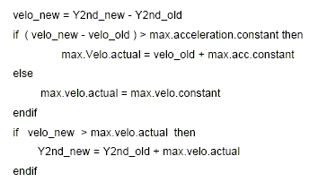 В данном примере мы сравниваем значения скорости и ускорения с предустановленными константами и если эти величины превышают пределы, они заменяются на значения из следующей формулы:
