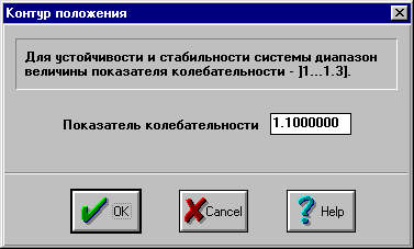 б) Пpи зaдaнии дoпoлнитeльныx дaнныx пo вeличинe пoкaзaтeля кoлeбaтeльнocти кoнтуpa пoлoжeния (1) нa экpaнe пoявитcя cлeдующее окно: