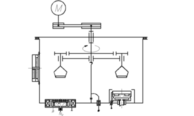 Механизм привода подложек представляет собой мотор-редуктор, который через ремённую передачу передаёт движение на манжетный ввод вращения. Ввод вращения соединен с валом поворотно-карусельного механизма с держателями кремниевых подложек. Согласно схемы рис.2 подложкодержатели совершают два вида движений: вращательное и планетарное, (которое обусловлено вращением от внешнего источника центрального диска, несущего подложкодержатели).
