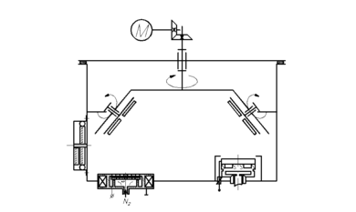 Механизм привода подложек в этом варианте представляет собой мотор-редуктор, который через коническую зубчатую передачу передаёт движение на манжетный ввод вращения. Ввод вращения соединяется с валом карусели.