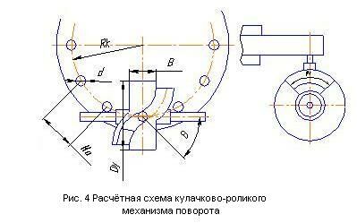 Для роликово-кулачкового механизма поворота, представленного на рис.4,точность останова ниже, однако он более надежен и конструктивно прост. Нашел применение для поворота каруселей многопозиционных не металлорежущих автоматов с большим числом позиций (более12).