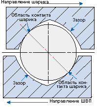 | Люфтовой класс (тип S) - без преднатяга (рис. 8). Размер шариков меньше канавки, следовательно, появляется зазор между гайкой и винтом. |