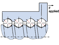 | Рис.4 Преднатяг Высокоточные ШВП имеют три класса преднатяга: люфтовой (без преднатяга), с преднатягом (незначительный преднатяг с четырьмя контактными позициями) и с прецизионным преднатягом (преднатяг с двумя точками контакта).