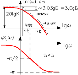 В граничном случае (D=0 или T1=2·T2) => T3 = T4 и отмеченные на графике Lm(ω) => см. рис. выше => точки «излома» совпадают =>