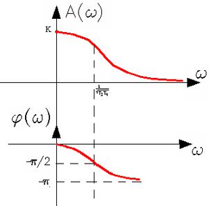 − звено близко к дважды интегрирующему звену (W(s) ≈ K/T2s2)