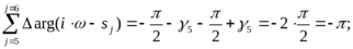 каждый полюс расположенный в правой полуплоскости «дает недоповорот» вектора