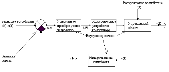 Следует отметить, что на систему управления действуют как внешние воздействия (управляющее, возмущающее, помехи), так и внутренние помехи. Помеха отличается от воздействия стохастичностью (случайностью) своего существования, тогда как воздействие почти всегда детерминировано.