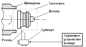 Поскольку в данном примере нет датчиков (измерителей), контролирующих изготавливаемую деталь, то если, например, резец был установлен неправильно или сломался, то поставленная цель (изготовление детали) не может быть достигнута (реализована). Обычно в системах подобного типа необходим выходной контроль, который будет только фиксировать отклонение размеров и формы детали от желаемой.