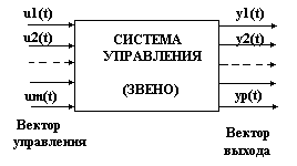 В последнее время широкое распространение имеет представление в переменных состояния, особенно для технически сложных систем, в том числе и для многомерных САУ. На рис. 1.6 приведено схематичное представление многомерной системы автоматического управления, где u1(t)…um(t) - управляющие воздействия (вектор управления), y1(t)…yp(t) - регулируемые параметры САУ (вектор выхода).