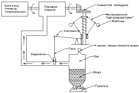 Рис. 1.3 - Схема автоматического регулятора Уатта