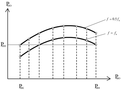 (f = fH) и в случае, когда расход потребителя после настройки, т. е. при РВО = РВН уменьшается вдвое (f = 0,5fН)