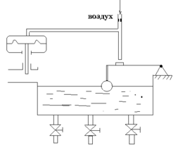 Дать описание работы пневматической системы регулирования уровня жидкости в емкости, принципиальная схема которой приведена на рисунке.