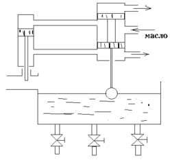 Дать описание работы гидравлической системы регулирования уровня жидкости в емкости, принципиальная схема которой приведена на рисунке.