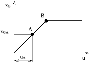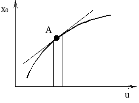 На рис. 3.9 приведена в качестве примера статическая характеристика передаточного звена; реализованного в виде вентиля на гидроприводе, где u – ход клапана вентиля, а х – расход жидкости через него.