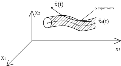 Таким образом, условия устойчивости могут быть сведены к выполнению следующего требования: система будет устойчивой, если от возмущенного состояния она перейдет в некоторую конечную область, являющуюся окресностью невозмущенного состояния.
