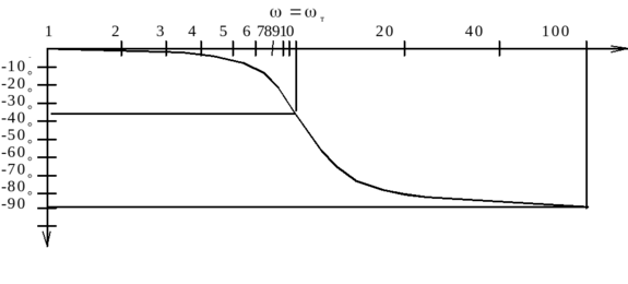 График этого выражения, построенный в логарифмическом масштабе аргумента ω есть логарифмическая фазовая характеристика звена (рис. 3.19)