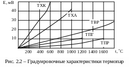 Градуировки термопар: ХА - хромель-алюмелевые; ХК - хромель-копелевые;