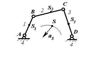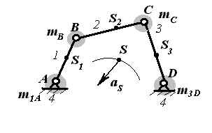 Таким образом, заданный механизм окажется заменен четырьмя массами, сосредоточенными в точках A, B, C, D. Звенья стали безинертными. Центр масс S системы остался в том же месте. При работе механизма центр масс S движется с ускорением aS , а это означает, что заданный механизм статически неуравновешен.