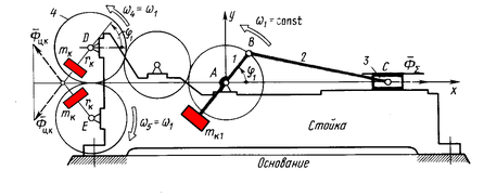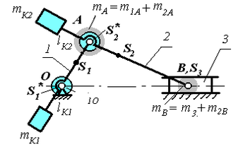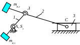 Масса всего механизма m = m1 + m2 + m3 + mK1 + mK2.