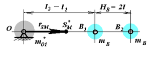 Каждое из звеньев заменяется двумя сосредоточенными массами, с использованием систему уравнений (10.4) и (10.5):