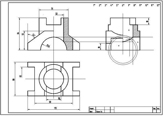 4.Если секущая плоскость направлена вдоль оси или длинной стороны тонкой стенки типа ребра жесткости, то стенку не заштриховывают в разрезе и отделяют от остальной части детали сплошной толстой линией. В поперечном же разрезе - штрихуют.