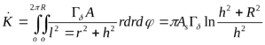 При равномерном загрязнении местности точечными источниками одного радионуклида мощность кермы на высоте h над центром загрязненного круга радиусом R можно вычислить так: