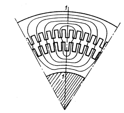 Рис. 4.8. Магнитные силовые линии в магнитопроводе электрической машины