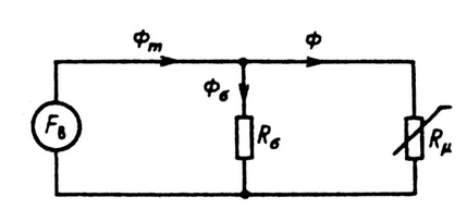 Рис. 4.9. Упрощенная схема замещения магнитной цепи