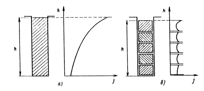Расчет распределения плотности тока по сечению проводников, находящихся в пазах магнитопровода, показал, что наибольшая плотность тока будет в верхних участках поперечных сечений проводников, т. е. в участках, расположенных ближе к раскрытию паза и воздушный зазор (рис. 5.1). Ток как бы вытесняется в верхнюю часть сечения проводника, поэтому такое явление называют эффектом вытеснения тока, а коэффициент kr, введением которого учитывают изменение активного сопротивления под действием этого эффекта, — коэффициентом вытеснения тока.