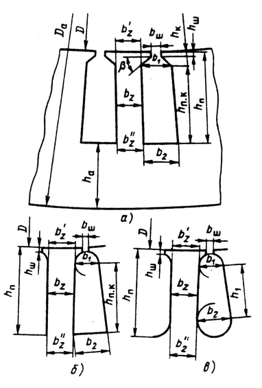Рис. 9.29. К расчету размеров зубцовой зоны
