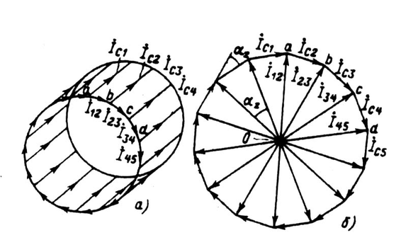 б — векторная диаграмма токов обмотки