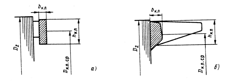 Ширину замыкающих колец обоих типов рассчитывают исходя из qкл полученной по (9.72), и выбранной hкл: