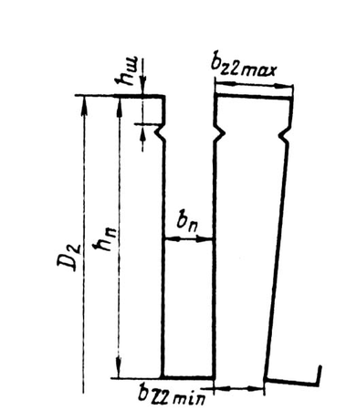 Размеры зубцов в верхних и нижних частях рассчитывают раздельно.